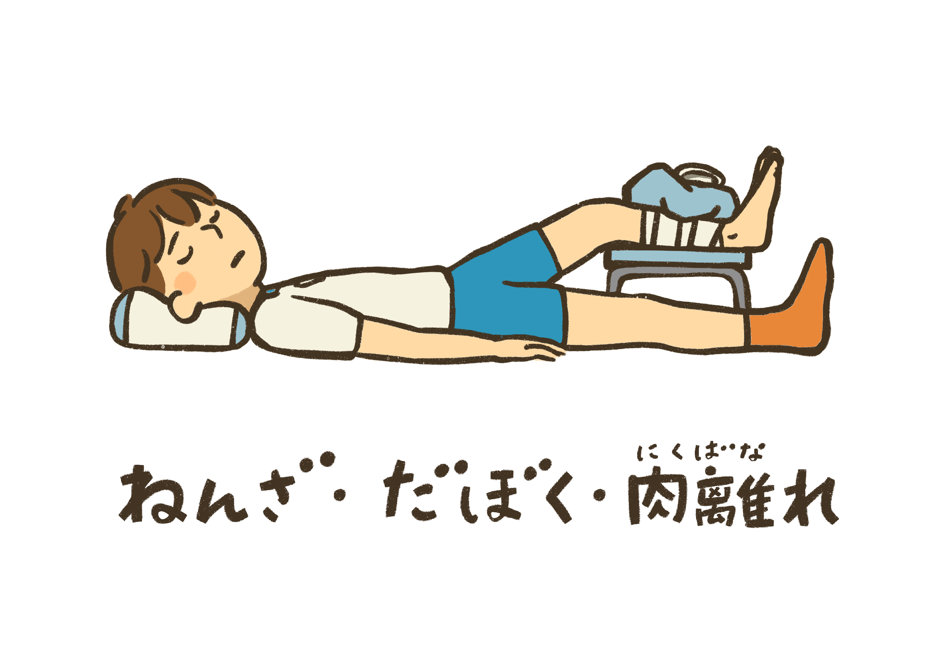 Rest(安静)・Icing(冷却)・ Compression(圧迫)・Elevation(挙上)の4つの処置の頭文字から名付けられました。
